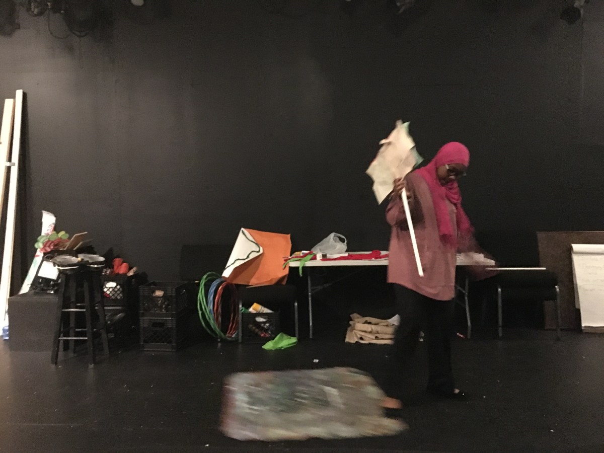 student creates prop sign